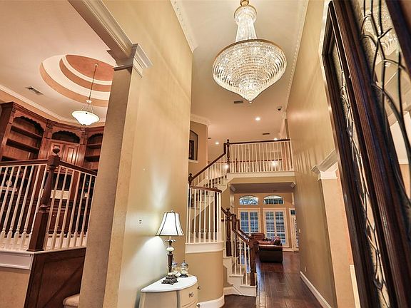 Stunning custom estate home on large cul de sac lot! Your own oasis awaits you in the huge backyard with a covered patio, pool & spa. Lots of grassy area along with the fabulous pool. GORGEOUS entry chandelier! Beautiful hardwood floors in the downstairs entry, formal living area, office, den, primary bedroom. Hardwood Floors in upstairs game room & extra room! The extra room could be a play room, media room, extra study, workout room...whatever you need it to be. Gourmet island kitchen with a Viking 6 burner cooktop with a grill. Lots of cabinets and storage! Lots of custom detail everywhere you look from all the molding, Plantation shutters, wide baseboards and tiered ceilings, Cozy fireplace in Den & primary bedroom. You will find lots of custom built-ins. Abundance of storage. Secondary bedrooms are spacious with generous closets. The gate in backyard opens up to Lakewood Oaks lot where basketball, tennis and playground is! Gated driveway! What a wonderful place to call home.