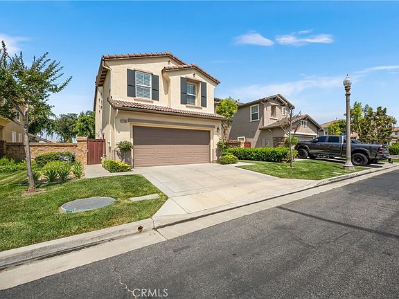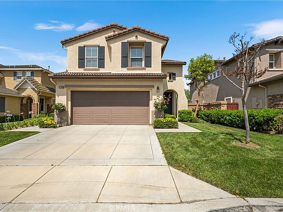 Discover the perfect blend of luxury and comfort in this meticulously designed home. Enjoy the ambiance as you walk through the front door into the great room with a precast-mantel fireplace, perfect for a cold evening. This home features 4 bedrooms and 2 1/2 baths. The expansive designer wood plank porcelain tiles are throughout the downstairs. A spacious great room adjacent to the kitchen with a breakfast bar and formal dining room creates a warm and inviting atmosphere for family gatherings. Unleash your inner chef in the gourmet kitchen, equipped with newer stainless steel appliances, ample quartz counter space and white wood shaker cabinets.. Step out to the back yard to appreciate the Alumawood patio cover to enjoy a private time with friends and family. Upstairs you will find a spacious loft (can be converted to a bedroom), thick and lush carpet in all rooms, two bedrooms and a generous sized master bedroom with upgraded bathroom.The primary suite features a large window with peaceful views, recessed lighting, shutters, large glass enclosed shower complete with updated tile work and beautiful bathtub. Secondary bathroom is also updated with a new tub and wood shaker cabinet and quartz vanity. The laundry room finishes this level with extra storage. It is a great opportunity for a younger family with kids or retired couple to move in the amazing home to explore the quite, safe and family oriented neighborhood. The clubhouse is very close and easy freeway access to this well-sought forever home.