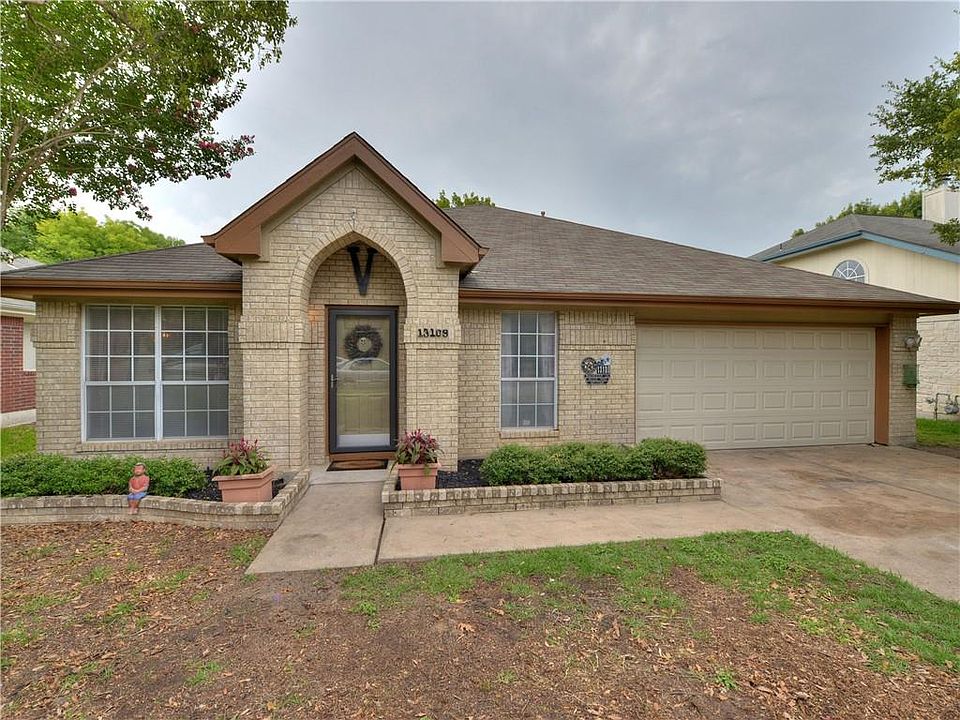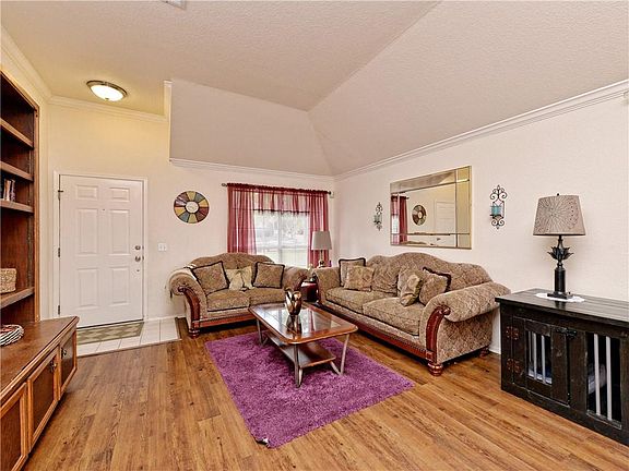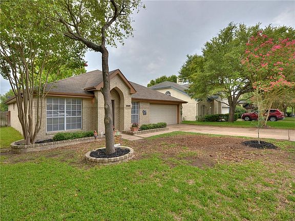 One story floorplan with open living/breakfast/kitchen, large combined living and formal dining area, over sized primary bedroom, and two car garage. Island kitchen with awesome storage, skylight, and recent stove, dishwasher, and built-in microwave. Primary bath has separate shower and soaking tub, two closets, dual sinks, and private toilet area. Large back yard with shade, deck areas, portable shed, sprinkler system, and rear entry gate. Laminate flooring or tile in all areas except for three secondary bedrooms. Mature tree lined neighborhood with community pool and park areas. Super access to Samsung, shopping, eateries, and IH35. Don't miss this home! It won't last long!