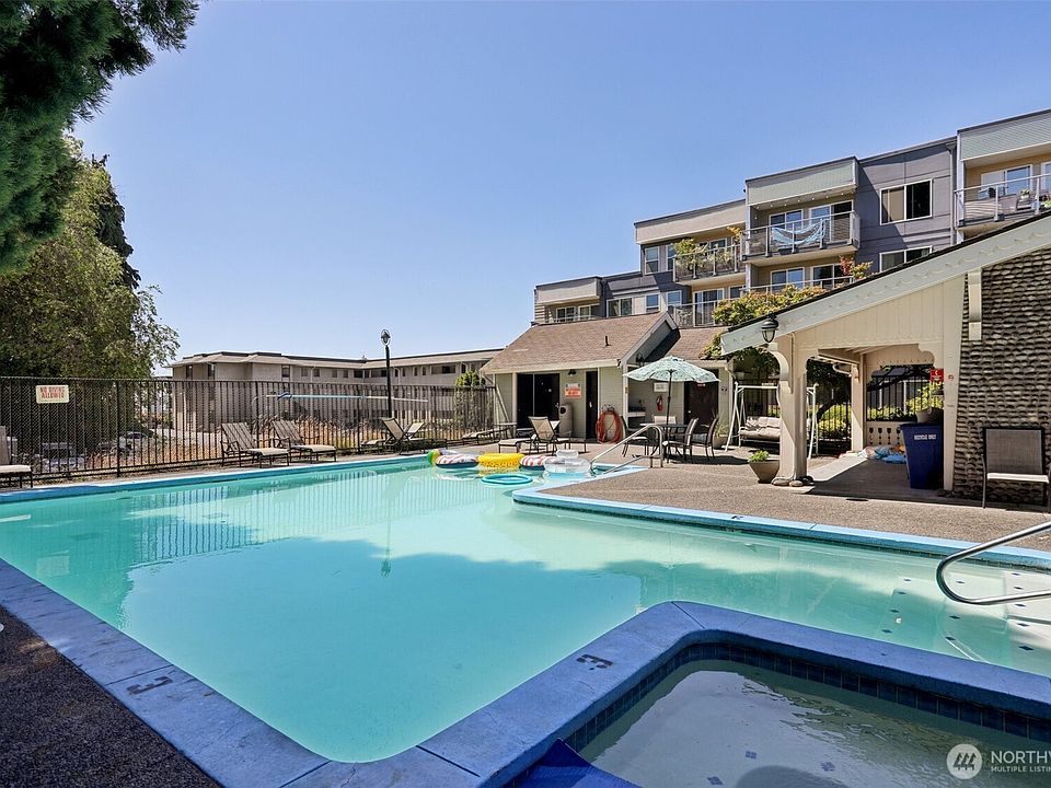 Chic urban living in the heart of Seattle w/this well maintained 2-bedroom, 1-bath North Beacon Hill condo. Ground floor, corner unit has only 2 direct neighbors. Secure, well-managed building, w/club house & pool this home offers the perfect blend of comfort, style, & convenience. Bright, open floor plan features stainless steel appliances, large windows, laminate-wood floors, spacious living area w/wood burning fireplace & sliders to outdoor patio, in unit laundry, & 1 secure garage parking spot. Great proximity to ID, stadiums, freeway, light rail, bus, & downtown—this condo provides an ideal base for enjoying all that Seattle has to offer. First time buyer, downsizing, or investor this is a must-see!