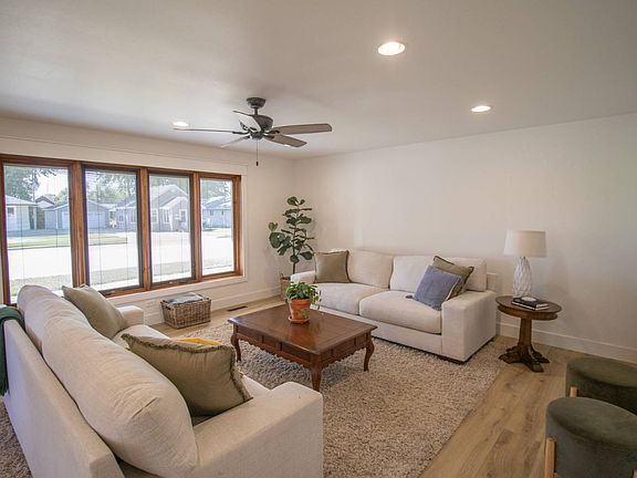 This Rock Valley home offers a welcoming open floor plan with 4 bedrooms and 3 bathrooms. The main level showcases a beautifully updated kitchen and a bright living room filled with natural light from large windows. Convenient main-floor laundry includes access to both the patio and attached garage. The primary suite features its own bathroom with a tiled bath/shower, while another bedroom and a full bathroom with a tiled shower complete the main floor. Downstairs, you'll find two additional bedrooms, a bathroom, and a spacious storage room. Recent upgrades include a brand-new gas furnace and central air in 2025. Outside, enjoy the cement patio, attached garage, and the added bonus of a detached garage with alley access-perfect for extra vehicles or projects.