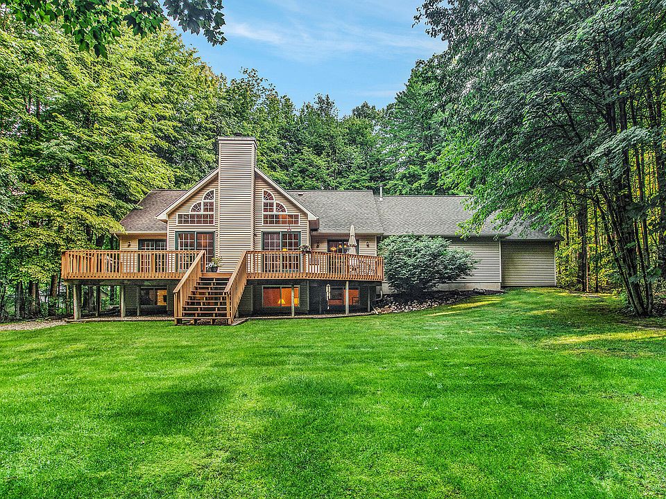Exceptionally well maintained home only minuets from down town Ada. The 4.28 acre lot provides nature and privacy while still being part of a community. The new driveway leads to the attached 3 stall garage. The kitchen offers newer appliances, space to work and entertain. Vaulted ceilings and a fireplace welcome you into the living room, overlooking the spacious deck and well manicured back yard. The main floor primary suite includes tub, shower, walk in closet and access to the deck. Upstairs are 2 bedrooms & full bath. Downstairs is a spacious family room with 2nd fireplace, a rec room (easily made into bedroom #4) a full bath and ample storage room. Out back is a shed for additional storage & whole house generator. Main floor laundry. This home is move in ready and not to be missed!