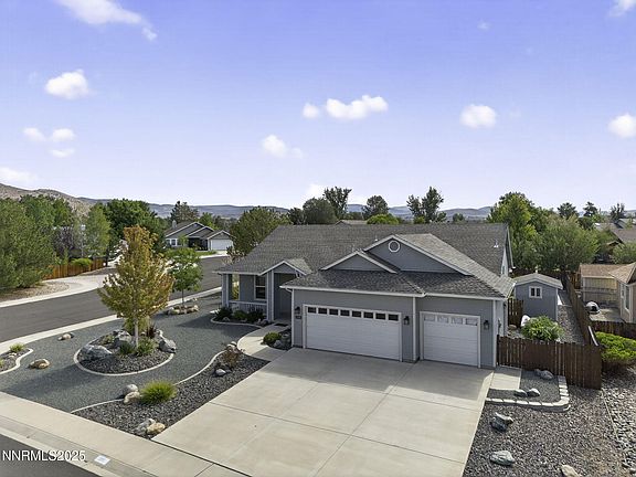 Welcome Home to Wildhorse in Minden! This beautifully maintained 1,848 sq. ft. 3bed/2bath 3 car garage home sits on a spacious .26-acre corner lot, offering both privacy and convenience in one of Minden's most sought-after neighborhoods. Thoughtfully landscaped with mature trees, low-maintenance yards, a covered and partially covered patio, storage shed, commercial-grade steel fire pit, and a 32.5' RV/boat/off-road toy pad (with room to extend), this property is designed for both everyday living and entertaining. Full drip system and lawn sprinklers complete the outdoor amenities.
