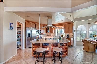 House has an angular layout rather than a boxy rectangle. Very attractive design with vaulted ceilings, sliding glass doors, and window views. Two of the bedrooms are now offices that can easily be converted back to bedrooms. Computers, landline telephones, and television are on cable. Insulated and wallboarded garage with storage loft, workbench, and cupboards and drawers. Pavers replaced concrete pool and patio deck in 2016