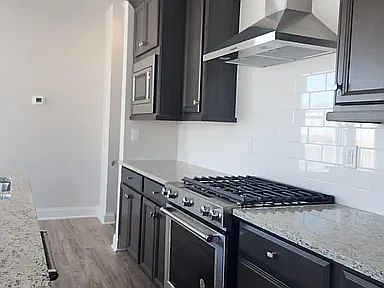 First Floor: Ascend to the open-concept living area, where a bright and airy great room welcomes you. The modern kitchen features granite countertops, an expansive island, stainless steel appliances with a vented hood, and gleaming hardwood floors. The sun-drenched walk-in pantry adds a touch of luxury, while the dining area offers access to a charming 12x12 deck with scenic views. A stylish powder room completes this floor, perfect for guests.