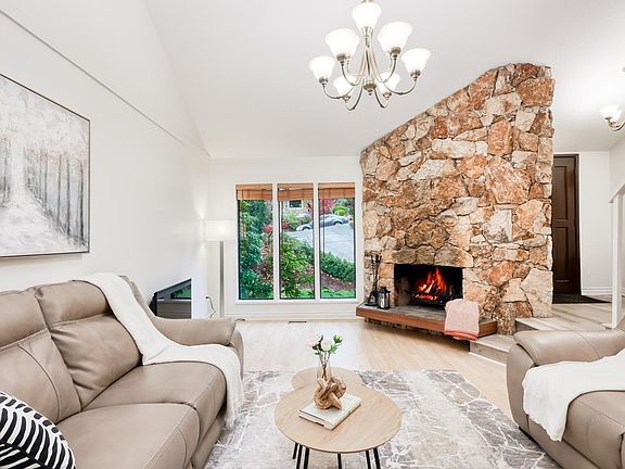 This spacious 4-bed, 4-bath home offers vaulted ceilings, a stone wood-burning fireplace, and a gourmet kitchen that opens to a cozy family room. Enjoy lush greenbelt and partial city views from the upgraded decks, including an epoxy-surfaced upper deck. Upstairs features 3 generous bedrooms, including a primary with a walk-in closet and ensuite. The basement includes a versatile rec room with potential for a 1-bedroom suite. Upgraded in 2025 with a new roof, new deck, new appliances, new flooring, and fresh paint. Additional renovations include updated interior paint, 2 renovated bathrooms, refreshed exterior paint, a refreshed stone chimney, a high-efficiency furnace, 2025 kitchen appliances, and a 2022 water heater.