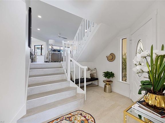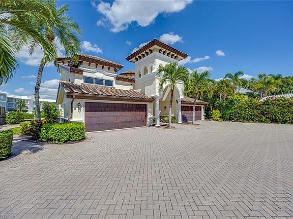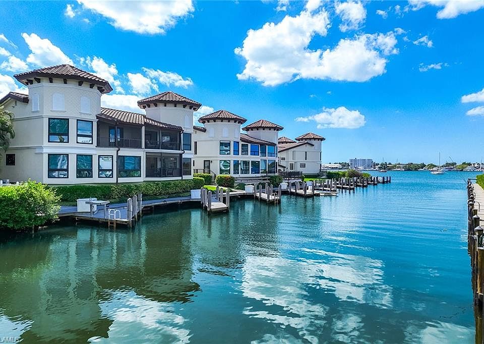 This Naples Bay view townhome checks all the boxes! In the cul-de-sac of the sought-after Royal Harbor area, this boater's dream is just a moment to open water. Directly beyond the patio is your boatslip, which can accommodate up to a 32 foot vessel. Inside the residence, you're invited to daydream from the many water views, watch the yachts and dolphin cruise by, or sun at the pool shared by this intimate hamlet of eight homes. Be sure to check out the vistas from two patios located on different levels. From the walls inside, this jewel box is adorned with over $315,000 in renovations to luxury standards. Designer selections include large, rectified porcelain tile (no carpet), creamy onyx stone tops in kitchen, expanded kitchen has walk-in pantry and additional built-in cabinetry. Modern glass and stainless appliances include a Miele dishwasher and built-in wall ovens. The great room offers coastal casual elegance, with with a screened patio overlooking bay and canal. The spacious dining room is a place to entertain while guests enjoy the partial bay views. The wet bar is complete with built in wine cooler, custom cabinets, wine cooler and lighting. Three large bedrooms have ample closet storage and modern elegant bathroom finishes. An air-conditioned, oversized two-car garage with epoxy flooring provides additional comfort and storage. All of this luxury is in minutes of Old Naples world-class dining, boutique shopping and pristine beaches, this is the ultimate expression of luxury waterfront living.