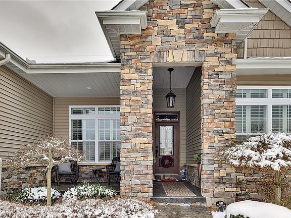 This custom-built 2013 ranch offers thoughtful design, quality finishes and flexible living spaces. The main level features an inviting entryway with a full bath, a comfortable guest bedroom and a private office with a closet that could easily serve as a third bedroom. The open concept living room, dining room and kitchen showcase vaulted ceilings, beautiful natural light, hardwood floors, elegant lighting and a brand-new kitchen with black stainless appliances. A spacious laundry room sits just off the main hall, leading to the stunning primary suite with a tray ceiling, walk-in closet and a gorgeous bath with a walk-in shower and soaking tub. The fully finished basement adds even more living space with a wet bar, a full bath and a flexible room that could be a fourth bedroom (no closet), gym, or hobby area, plus a sizable unfinished storage area. The stone-accented front porch, mature landscaping and a fully fenced backyard create an inviting and beautifully finished exterior.