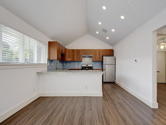 Adorable condo near Mueller! Popular restaurants, shopping and entertainment, as well as Mueller Lake Park and the Texas Farmers Market. Located at the end of a quiet street, the boutique 18-unit complex includes a community garden and guest parking. This unit features a modern open kitchen, vaulted ceiling, spacious bedrooms, wood-look laminate flooring and great natural light. No neighbors above or below. Don't miss this hidden gem!
