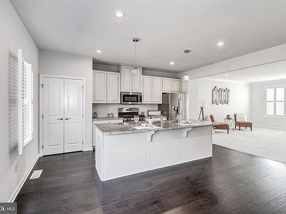 Welcome to your new home! This glorious new custom Mozart layout townhouse is located in flourishing East Greenwich boasts 3 bedrooms, 2 1 2 baths, one car garage and 1, 900 square feet. Upon entering, you will be greeted with rich dark hardwood floors in foyer, half bath, coat closet and spacious family room with slider glass door leading to your peaceful backyard. The family room is the ideal movie room, kids play room or home office- the possibilities are endless. Everything in this home has been upgraded to the highest and finest. This lavish kitchen features 42' inch white cabinetry, upgraded granite counter tops, oversized pantry, crystal pendant lighting above sizable island, stainless steel appliances and dark hardwood flooring. The open kitchen concept over looks a generous size living room, perfect for entertaining guests and hosting the holidays with the family. Additionally you will find 3 bedrooms, 2 full baths and laundry area on the upper floor. You will fall in love with this spacious master suite; large walk in closet, recessed ceiling, master bathroom with double vanity, beautiful stall shower with tile and dual shower head. Other design elements throughout this home include, crown molding, plantation shutters in kitchen and living room, recessed lighting, neutral paint throughout, exterior stone, shake shingle siding and rustic farmhouse shutters complete this lovely home. The next lucky buyer will take advantage of the remaining 10 year new construction warranty on all major home systems and tax abatement! The Villages at Berkley is conveniently located to 295, rt 42, walking distance to convenient stores, minutes from Philadelphia, Deptford mall and Gloucester Premium outlets. There is not a thing to do in this home, just unpack your bags and enjoy just in time for the holidays!
