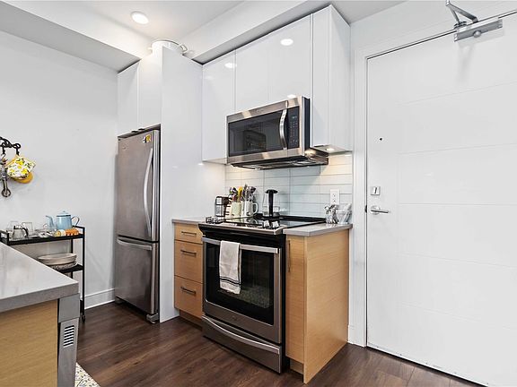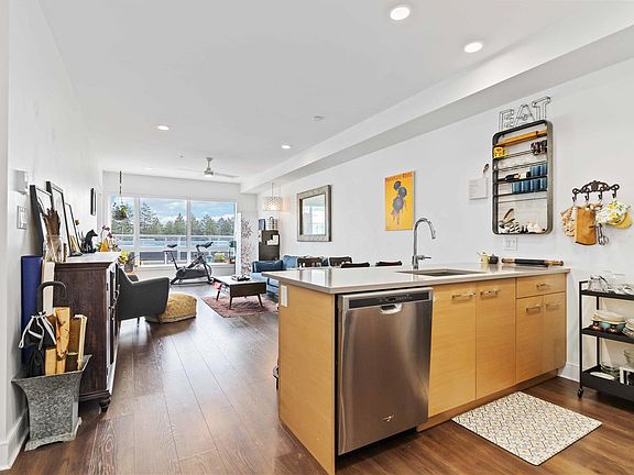 COVETED LAKEPOINT ONE, in the desirable Westhills neighborhood, just steps from Langford Lake, parks, trails, library, rec center & only minutes to shopping, restaurants & all that the vibrant Westshore has to offer! This boutique building features: pet wash station, car wash stall, secure parking, storage locker, kayak/paddleboard storage & rooftop patio with seating, tables, BBQ & sweeping views over the pristine waters of Langford Lake to Bear Mountain. Be impressed by the bright, open floor plan, gleaming floors & abundance of light thru a profusion of windows, enhanced by airy 8'10" ceilings. Chef's kitchen with quartz island/breakfast bar, ceramic tile backsplash, undermount sink & stainless steel appliances. Inline dining rm & spacious living rm open to large deck - perfect for your herb garden & relaxing with your morning coffee. Generously sized bedroom with cozy, genuine cork flooring & large closet. Luxurious 4pc bathroom with heated tile floors. Bonus: in-suite laundry!