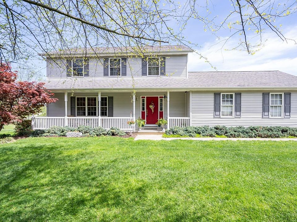 QUALITY Home in QUALITY location! 3, 032 sq ft total. 1st floor features huge living room, utility room & dining room or office complete with French doors, and half bath. Also on 1st level is eat-in & fully equipped kitchen with stunning granite counters, tile backsplash, custom oak cabinets & pantry. 2nd level has 3 bedrooms including large owner suite w/ walk-in closet. But wait, there is full finished walk-out basement with rec room, bedroom & additional full bath. Deck on rear overlooking stream & back yard. 2 Additional buildings of 32' x 48' & 30' x 40' both with concrete floors. The 30' x 40' building has electric, water, car lift, 10' garage doors and attic/loft area for storage. Both great for hobbies or shop. Beautiful & quiet rural neighborhood. A great place to call home!