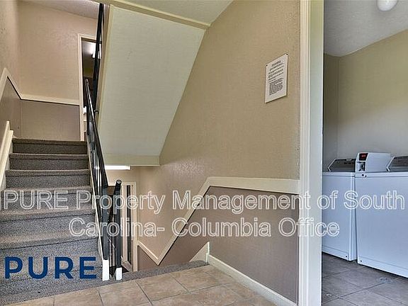 Beautifully updated 1 bedroom, 1 full bath condo in the gated Briargate Condominium community in NW Columbia. This 3rd floor unit has an inviting turf-floor balcony and is fully updated inside! Luxury vinyl plank hardwood flooring, crown molding, as well as updated lighting and fixtures throughout. Living room off entry open to dining area. The modern galley-style kitchen features high-end stainless steel smooth-top range/oven, microwave, dishwasher, and refrigerator. Combination washer/dryer in kitchen gives you in-unit laundry. Spacious bedroom has a custom walk-in closet w/ built-in organization. Full bathroom off hall with gorgeous tile flooring, marble top vanity, storage, and tiled rain-head shower w/ sprayer. Shaded common area with mature trees and barbecue area. Gated community w/ two pools, clubhouse w/ free Wi-Fi, fitness center, media room available to reserve, charcoal grills, picnic tables, and playground. Storage units available to rent. Building pay laundry room if need. Water/sewer included. Convenient to I-20/I-26, Harbison dining/shopping, and Downtown Columbia. NOTE: Briargate HOA requires a separate background check ($26) and pet fee ($100) for approved applicants age 17+ ; additional fees/rules may apply. Per HOA, pets must not exceed 50lbs and 20 inches tall when full grown. Renters Insurance Required for this property.