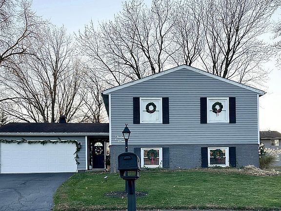 Move-in ready 5 bedroom, 3 bath bi-level located on a cul-de-sac! This beautifully maintained home sits on a wooded lot and features over 20 arborvitae trees for exceptional privacy. Enjoy a fully fenced yard, newer deck with lattice privacy wall and thoughtfully landscaped yard filled with perennial plants and ornamental grasses. Exterior updates include newer siding and updated indoor/outdoor lighting. Inside, you will find luxury vinyl flooring throughout, complemented by new baseboards and quarter round, plus a freshly painted interior. The kitchen offers a subway tile backsplash, newer appliances, new sink with Kohler faucet and a convenient breakfast bar. The bright and cheery dining area leads out to the deck. The lower level provides two additional bedrooms , a 3/4 bath and a spacious L-shaped rec room. Ideally situated near downtown shopping, dining, and entertainment, this home combines comfort and convenience.