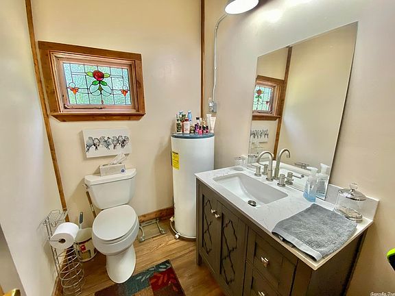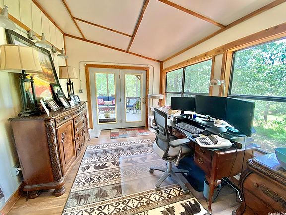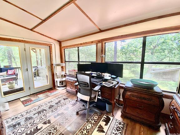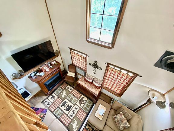 Vacation home or starter home and has almost 20 acres. Private with a gate at the driveway for your privacy and you cannot see the home from the gate. House has a loft bedroom and a sunroom on the back that could be a second bedroom. Screened in sun porch for your mornings and evenings to enjoy the peacefulness and watch the deer roam. Pond behind the house and an older chicken house that could be used again with a little work. One storage building will convey with the property. City and well water