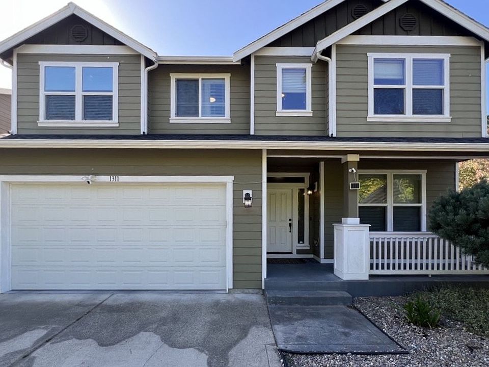 Gorgeous 5-bedroom home with over 2,800 sq. ft. Wood floors throughout the main floor, open family/kitchen space. Kitchen has granite counters, stainless steel appliances, huge center island. Gas fireplace, air conditioner, full size washer/dryer included (upstairs), private fully fenced backyard w/a covered patio. Main-floor guest room/den, dining and living rooms.