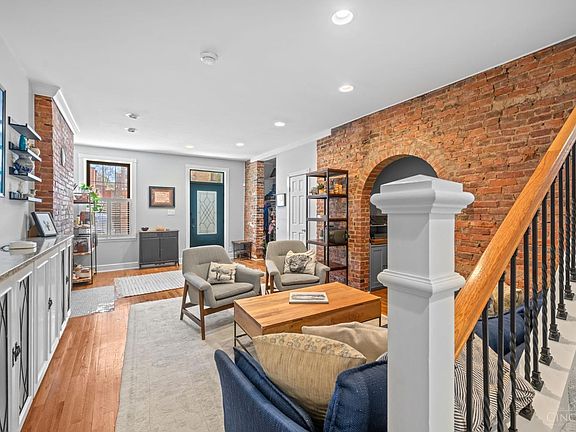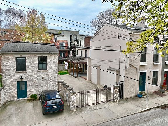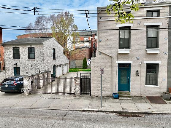 A Downtown Gem! Historic 3bed/2.5bath home on a quiet street in Pendleton w/gated entry, courtyard & 2 car detached carriage house. Main house features hardwood floors throughout, exposed brick, covered patio & balcony. Kitchen includes wood cabinets, marble countertops/backsplash & basin sink. Enjoy entertaining on the covered patio & outdoor kitchen w/BBQ & ice chest. 2nd flr features 2 beds w/an attached playroom/study, bath w/marble dbl vanity sink, frameless shower & clawfoot tub. 3rd flr is a great primary suite or office. Carriage house upper floor can be stand-alone short term rental studio w/kitchen, W/D & private entrance from Spring St & access to the garage can be locked from the inside. Energy efficient upgrades include solar panels & 2 EV car chargers. Convenient location w/easy access to Ziegler Park & Pool, Over the Rhine, CBD & highways. This is a fantastic home for a buyer desires privacy & security, while living in one of Cincinnati's most walkable neighborhoods!