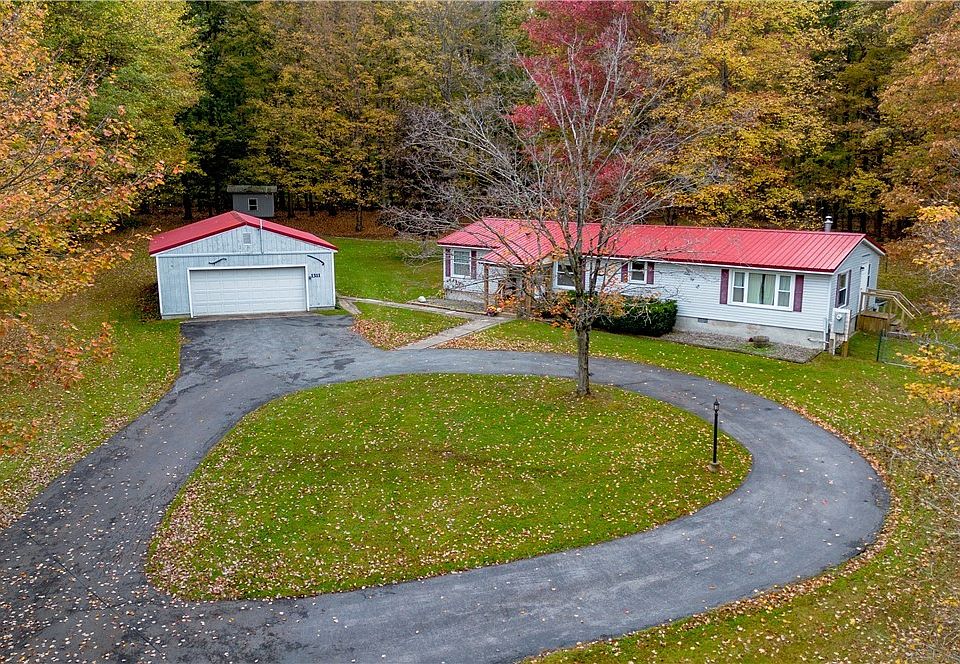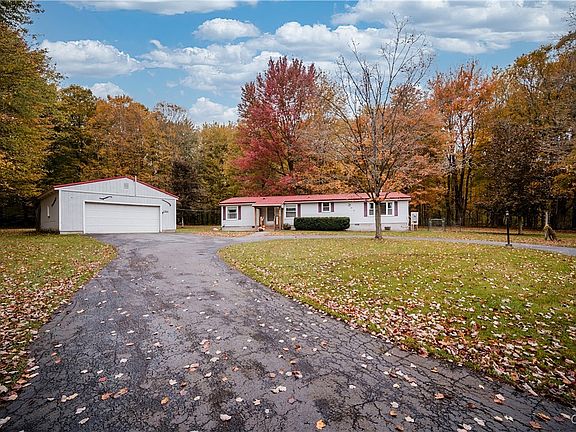 Welcome HOME! This charming ranch-style home is move-in ready and located on nearly 2 acres within the Phoenix school district. There is a detached two-car garage with lean-to off the back and shed for additional storage. Part of the yard is fenced and there is a nice rear deck from which to enjoy the park-like yard with many mature trees. Inside the home, there are three bedrooms and two full bathrooms including primary bedroom with its own full bath and plenty of closet space. There are two large living areas, one with a dedicated dining area yet also a LARGE eat-in kitchen with additional sitting area so plenty of room to spread out and a layout that offers options for how a new owner would like to use the space. Main living room has French doors with blinds between the glass that lead out to the recently refreshed rear deck. There is first-floor laundry as well and the washer and dryer are included with the sale, as are all of the kitchen appliances. Forced air furnace runs off propane and this home features central air conditioning and a metal roof as well. Some recent improvements include new electrical service to the home in 2022, brand new water heater in April of this year, new dishwasher just this month (October 2025) and vinyl plank flooring throughout much of the home. Showings begin Friday, 10/17 @ 8AM.