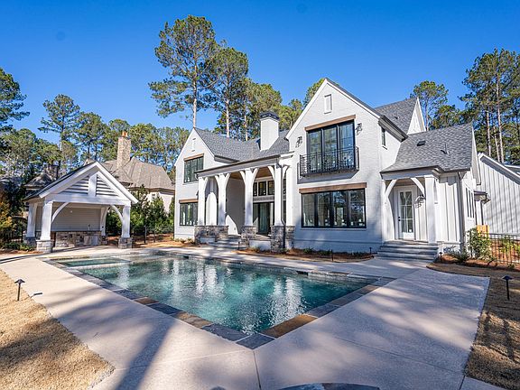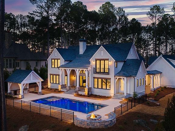 "NEW CONSTRUCTION 24-HR LAKE ACCESS CUSTOM HOME AT SWIFT CREEK REYNOLDS LAKE OCONEE WITH ENDLESS DETAILS, WELL-DESIGNED FLOOR PLAN. THIS SKILLFULLY THOUGHT-OUT RESORT STYLE LIVING OFFERS A MAIN LEVEL WALKOUT TO YOUR HEATED POOL, SPA, FIRE PIT, CABANA WITH BAR, TV & BEVERAGE CENTER, ALLOWING YOU TO ENJOY THE OUTDOORS ALL YEAR ROUND" This 4,600+ sq ft home offers 5 bedrooms, 5.5 baths, an office, a media room and many more details - ideally located within walking and boating distance to the Lake Club, The Ritz-Carlton, Kingdom of Golf and other premiere amenities of Reynolds. Interior features include custom black steel stairs, handrails, and catwalk; custom black steel Juliet balcony at bonus room upstairs; fully opening accordion steel doors from main living room to back porch/pool area; white painted brick fireplace with barn beam mantle; light pine/engineered hardwood/herringbone pattern flooring throughout main floor and landing upstairs. Kitchen features include walk-through scullery kitchen with prep sink/built-in fridge/cabinets & storage; walk-in pantry with built-in cabinet and black marble countertops; bar area in kitchen with custom black steel & glass cabinet doors, ice maker; full marble slab on backsplash to the ceiling with marble ledge, pot filler; center island w/ marble countertop; Wolf 48in Range Duel Fuel; Subzero fridge. Outdoor features include heated pool (36 x 16)/hot tub/tanning ledge; cabana with wet bar/counter on back wall with sink, beverage center, TV hook-up over counter, can lights, and ceiling fan; stone fire pit at pool edge; fenced backyard. 3 car garage, fully-finished in-law suite over garage with full bath w/ marble tile, closet. Membership is available.