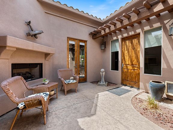 Tucked off Indian Hills Drive with no HOA, this Cary Blake-designed home is thoughtfully built and well placed. The gated front courtyard with fireplace sets the tone for indoor-outdoor living. Inside: neutral tones, stainless appliances, and another cozy fireplace. The oversized two-car garage has an attached workshop/storage shed, and out back you'll find a pet-ready patio and xeriscaped yard—low maintenance so you can hit the trails instead of the lawnmower. Recent updates include HVAC, water heater, and softener. Just 10 minutes to epic hiking and biking, yet it feels like a quiet world of its own.