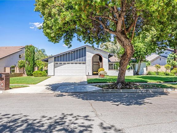 Perfectly positioned in a double cul-de-sac neighborhood this home offers 4 bedrooms, 2 bathrooms and is beautifully remodeled! A brick paver patio leads the way to the charming front patio and through the front door. Inside wood laminate flooring carries throughout the home accented by a delightful designer paint color and white shutters throughout. The family room offers an inviting space to gather with a brick accented gas fireplace and wonderful views of the backyard. The spacious kitchen features, white cabinets, quartz countertops, soft close drawers, SS appliances, a SS farm sink, and flows to the dining room with a large slider that opens to the oversized lot creating the perfect flow for indoor/outdoor entertaining. The backyard is your own private oasis with mature trees lining both sides of the yard, a variety of fruit trees at the back, a spacious patio, and two levels of green grassy area for play! Making your way back inside and down the hallway, you will find three spacious secondary rooms, each with built-in closet organizers, an upgraded secondary bathroom with a custom tile shower and seamless shower door, and the primary suite, offering double closets, high ceilings, and an upgraded en-suite bathroom with beautiful custom appointments. Conveniently located within walking distance to Peppertree Elementary School and Pioneer Junior high plus easy freeway access, and close to shopping, dining, and entertainment, this is a home that you don't want to miss!