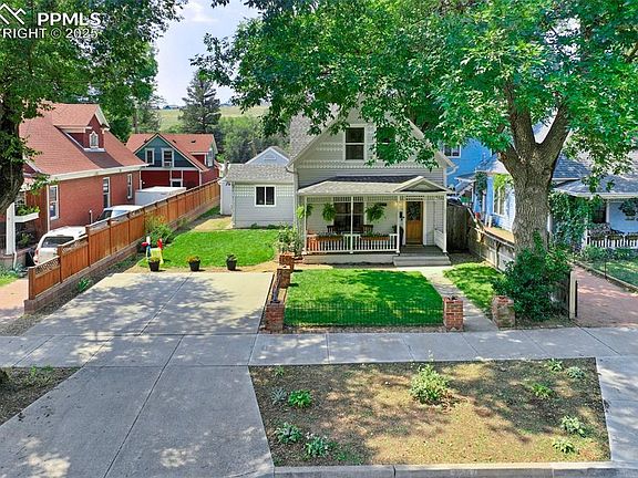 Discover this exquisite four-bedroom, two-bathroom traditional Victorian home that seamlessly blends modern updates with delightful traditional details. Ideally located in the heart of Old Colorado City, this property is nestled on one of the most picturesque tree-lined streets in Colorado Springs, promising to impress. The main level features a charming formal entryway, a relaxing living room filled with abundant natural light, and an open dining area enhanced by a custom-crafted rolling library. Additionally, the stunning chef’s kitchen boasts meticulously designed soft-close cabinetry, stainless steel appliances, a wine fridge, and elegant granite countertops. Just off the main living areas, you will find two inviting guest bedrooms, a hallway bathroom with a spacious soaking tub, an oversized tiled laundry room, and access to a generously sized two-car garage. Ascending to the upper level, you will discover a large primary bedroom retreat featuring a delightful extended window seat, a fourth bedroom, and a spacious three-quarter bathroom complete with attractive tile flooring, a custom-tiled step-in shower, and a single-sink vanity. The outdoor space serves as an oasis, featuring mature trees and landscaping, a large covered wooden porch, an extended paver patio, a fenced backyard, and two off-street concrete parking spaces at the front, along with alley access that includes a convenient storage shed. With original wood floors, doors, knobs, and intricate wood details, this home is sure to captivate you from top to bottom!