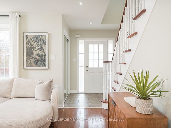 Welcome to this beautifully updated 3-bedroom, 4-bathroom home in Milton's highly sought-after Dempsey neighbourhood-a perfect blend of comfort, style, and convenience. Ideally located within walking distance to parks, schools, and amenities, and offering quick access to the 401, 407, and GO Station, this home is a commuter's dream. Inside, you'll find a bright, recently renovated eat-in kitchen featuring quartz countertops, tile backsplash, and stainless steel appliances, with direct access to a fully fenced, spacious backyard-perfect for relaxing or entertaining. The open-concept living and dining area showcases hardwood flooring, upgraded lighting, a gas fireplace, and a neutral palette throughout. Upstairs offers three generous bedrooms, including a primary suite with a brand-new 3pc ensuite (2025), and a large updated main bath (2025). The professionally painted interior (2025) and finished basement (2025) add even more value, with an open rec room, full 3pc bath (2025), laundry, and sump pump. With parking for three and interior garage access, this move-in-ready home truly has it all. Roof 2020, Furnace 2020