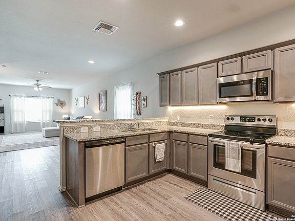 Built in 2019 and impeccably maintained! Located in the heart of Heather's Place, a small close-knit neighborhood fit for everyone. Entering the home you are greeted by a convenient flex space which can be used as a formal dining, office, secondary living area, you name it. Granite counters, under-mount cabinet lighting, Stainless appliances, and vinyl plank flooring makes up the open and inviting kitchen. Enjoy your meals in the breakfast area or at the kitchen bar. The large living room open to the kitchen provides plenty of space for family or guests. The spacious master includes space for a sitting area, en-suite bath with walk-in shower, and large walk-in closet. Located in a separate wing of the home, you will find two bedrooms, a secondary bathroom, and utility room. The backyard offers a patio to lounge on and ample space for a pool if desired. Highly sought after SCUC-ISD schools and easy access to IH-10. You will definitely want to take a look at this one!