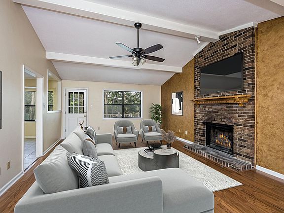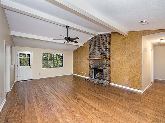 Spacious eat in kitchenCozy brick fireplacePrivate tree-shaded backyardAmple cabinetry
