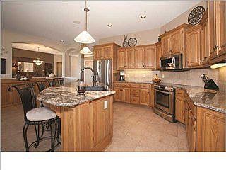 Large Robl built Ranch on a huge cul-de-sac lot in impeccable condition! A unique and very stylish floor plan with numerous upgraded features! Entryway with a six-panel entry door with two sidelights and transom window, tile floor and 10ft ceilings! Fabulous formal dining with triple windows and transoms, arched openings over stairway, hutch inset and 10ft ceiling! Formal living room with triple windows and transoms above, inset and 10ft ceiling! Incredible kitchen with a huge upgraded granite top island with eating bar and library panel back, stair-stepped cabinetry with under-counter lighting, stainless steel appliances with upgraded range, dishwasher, built-in microwave, large six door pantry, separate built-in buffet, can lighting and tile floor! Large breakfast nook with oversize double windows and tile floor! Spectacular m/f family room with gas fireplace with tile and wood face including fluted columns with a celestial window above, two double windows and two single windows with transoms, ceiling fan and patio doors to deck! Fantastic master with coffered ceiling with lighting, bay windows and ceiling fan! Luxurious master bath with separate tile top vanities with lighted mirrors, oval tub with arched opening and picture window above, huge glass block walk-in tile shower, separate toilet room glass block window, tile floor and large walk-in closet! Guest ?? bath with pedestal sink and wood floor! Large laundry room with built-in cabinetry! The extra two bedrooms are oversized with ceiling fans, large closets and a Hollywood bath with granite top double vanity, tub/shower and tile floor! Fabulous basement family room with walkout Atrium doors, two sets of huge picture windows with flanker windows, incredible new built-in entertainment center with glass cabinetry and shelving on each side, gas fireplace with wood and stone face with double recessed columns and wood panels to ceiling, can lighting! Large wet bar with raised tile top, wood recessed library panel back and back bar with display cabinets and wine rack, frig space and can lights! Also finished are 2 large bedrooms and a full bath with granite top vanity and tile floor! Additionally finished is a super office with built-in desk with open shelving above, a full wall of cabinet storage and can lighting! High efficiency heating and air with humidifier and two newer water heaters! Covered deck plus an uncovered deck overlooking a huge private backyard with mature trees! Concrete siding and wood clad casement windows! 3 car garage that is fully drywalled and painted with two openers and man door to yard! Fully landscaped yard with wrought iron fence, sprinkler and well! The home has all features of a new home in an established fabulous neighborhood with an incredible clubhouse, pool, playground and lakes!