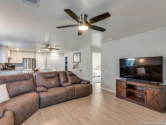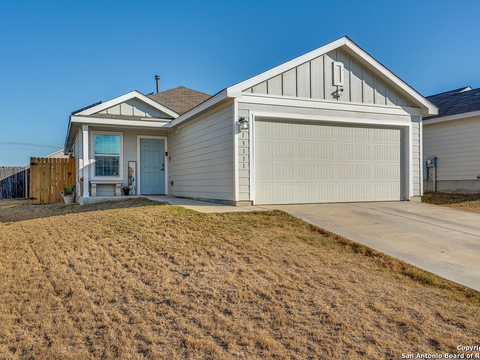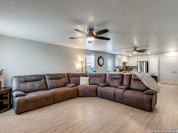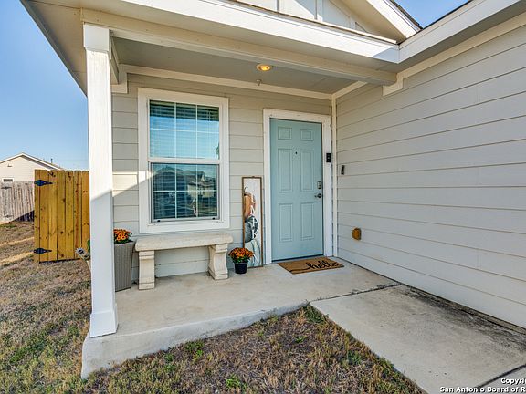 Like New & Move-In Ready! Super clean 3-Bedroom, 2-Bath, 2-Car Garage home built in 2020, showing like a model home! Step inside to a bright open-concept layout featuring a cute and elegant kitchen with stainless-steel appliances, gas cooking/range, beautiful granite countertops, and a counter-height bar perfect for casual dining. The spacious dining area flows seamlessly into the living space-ideal for everyday living and entertaining. The Primary Suite is thoughtfully tucked away in the back corner for added privacy, complete with a private owner's bath and a BIG walk-in closet. Bedrooms 2 & 3 share a spotless second bath, offering comfort for family or guests. Enjoy the convenience of a clean two-car garage and energy-efficient features throughout, including a tankless gas water heater (never run out of hot water!) and solar panels that help keep utility costs low. Located in a beautiful community with a pool and park, this home offers the perfect blend of comfort and convenience. Quick access to JBSA Lackland, Kelly, Brooks City Base, and Downtown San Antonio. Close to Palo Alto College and Texas A&M San Antonio - the location can't be beat! Like-new condition, Energy-efficient, low-maintenance living and great community amenities. Don't miss this charming home - it's ready for you to move right in!