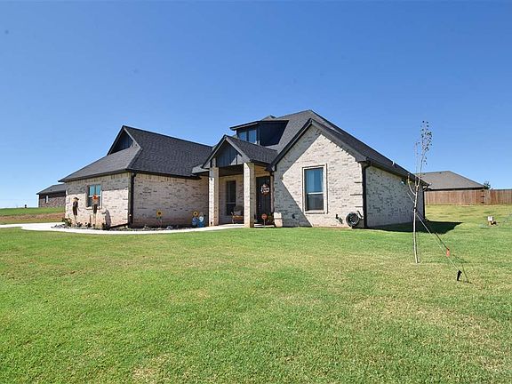 Welcome to this stunning 4 bedroom home right in the heart of Elgin! This property offers a perfect blend of modern luxury and timeless elegance. From the moment you step inside, you'll be captivated by the beauty and warmth this home exudes. Upon entering you'll notice an abundance of natural light that fills the open-concept living space. Gourmet kitchen has upgraded marbled quartz counters, large kitchen island, two pantries, stainless steel appliances, gas stove complete with built-in pot filler. Home boasts 4 bedrooms in a split bedroom floor plan. Two of the spare rooms are shared by an extended Jack-and-Jill style bathroom, each side with its own sinks. Primary closet adjoins to laundry room for ease of chore function. Outside offers a serene oasis where you can relax on the patio, host BBQs, or watch the kids play. The current owners recently upgraded the landscaping, added sod to fill the entirety of the the .5 acre yard, added gutters, and installed a 14 person in ground storm shelter in the 3 car garage. They also installed a whole house water softener and reverse osmosis water system. Elgin is known for its top-rated schools, friendly community, and a relaxed pace of life while still offering easy access to many amenities, 20 minutes to Ft Sill & less than an hour to OKC. This home has it ALL- don't miss the opportunity to make this dream home your own. Schedule a showing today!