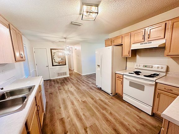 Inside, you'll find a spacious living area with modern luxury vinyl plank flooring and freshly painted walls throughout. The eat-in kitchen adds to the home's practicality.