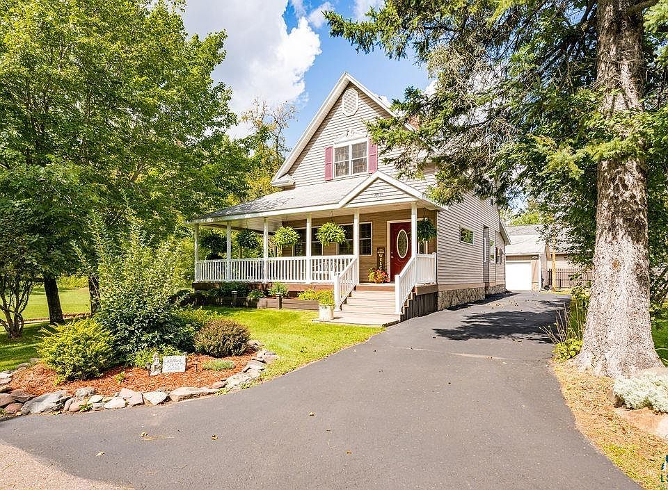 Spectacular 3+ bedroom, 2 bath property that is truly an outdoor enthusiast's dream! This stunning traditional is set on an amazing park-like yard with 120ft of frontage on Mission Creek, and is within 1/2 mile to Jay Cook, Chambers Grove, St. Louis River, Mont du Lac, and Munger Trails. You’ll not only love the proximity to trails, but also love this comfortable and completely updated home. The main floor offers a spacious living room with a wood-burning fireplace and access to the covered wrap around deck, an updated kitchen with white cabinets and newer appliances, a cozy sitting room, a mud room, and a rec room with a door leading out to the deck, hot tub and outdoor kitchen! Upstairs you’ll find 3 bedrooms, and an awesome full bath offering double sinks, and a jetted tub/shower with a tiled surround. The lower level offers 2 rec rooms, one with a gas fireplace and a bar, nice storage, and a tidy laundry room--plus an egress door which could make it a great guest space. Outside you’ll find an over-size 2-car garage with a walk-up attic and a shop, a storage shed, and a fun fire pit area next to an adorable sleeping cabin, a beautifully landscaped yard, and trail access at the end of the street! Grab your bike, wax your skis, lace up your hiking boots and get ready to explore!