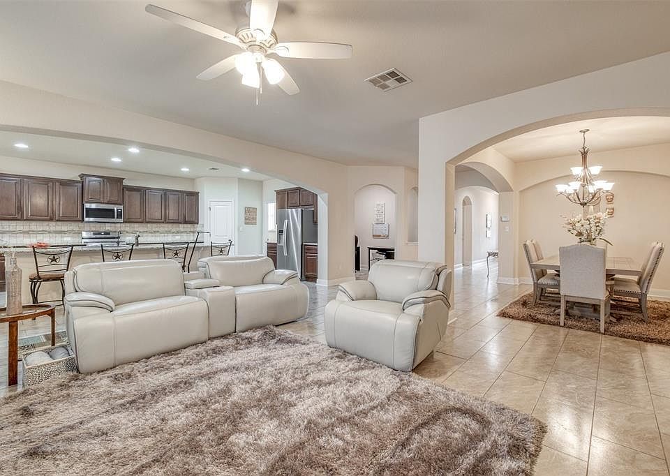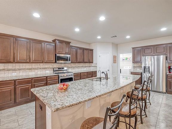 ** REFRIGERATOR, WASHER AND DRYER INCLUDED ** Discover the perfect blend of small-town charm and urban convenience in ShadowGlen, just north of Austin. This 5-bedroom, 3-bathroom single-story home offers tile plank floors throughout the spacious living area full of natural light. Enjoy cooking on the recently installed gas line for the cooking stove top and warm by the Pleasant Hearth vent-free gas fireplace in the living area. The well-appointed kitchen features ample counter space, a walk-in pantry, and a large island for easy entertaining. The primary bedroom boasts an en-suite bathroom with double sinks, a garden tub, separate shower, and a walk-in closet. Step outside to the covered porch and extended patio on this corner lot, providing an ideal space for both entertaining and relaxation. The 2-car garage includes A/C vents to please any home-mechanic. Enjoy the convenience of proximity to ShadowGlen Golf Club and nearby schools, while relishing in the community's amenities, including an 18-hole golf course, water park, and recreational center.