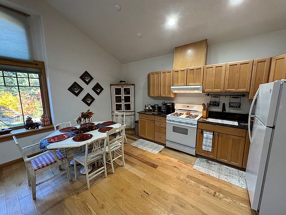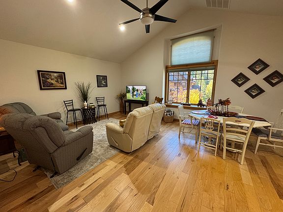 Enjoy peaceful forest views from every window, easy access to hiking and snowshoe trails, and the feeling of your own mountain retreat. The open living area is warm and inviting, perfect for relaxing after a day on the slopes.