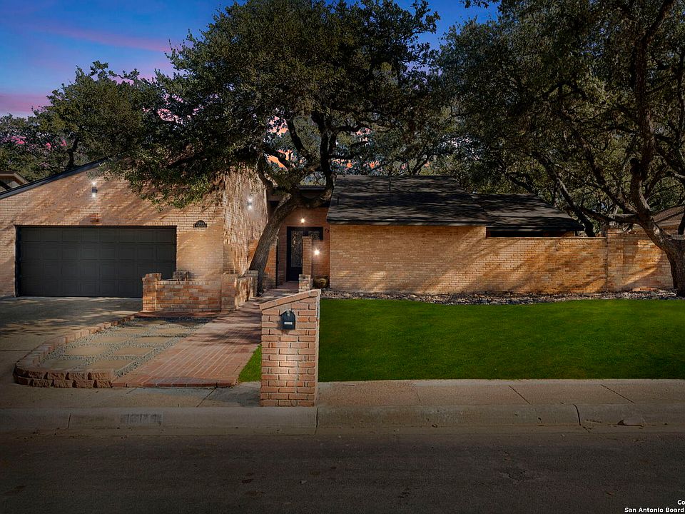 OPEN HOUSES THIS WEEKEND. Friday 12-2pm, Saturday 11-1pm, Sunday 11-2pm - Tucked beneath mature live oaks on a quiet street in the highly desirable Hunters Creek, this fully reimagined four-bedroom, three-bathroom home with an office AND a pool delivers over 2,500 square feet of SINGLE-level sophistication and indoor-outdoor flow. A countless amount of upgrades have been put into this home thoughtfully and carefully. Behind the private brick facade, an unexpected world unfolds - vaulted ceilings, crisp white walls, and expansive windows that fill the home with natural light. At the heart of it all, a central glass atrium serves as the home's architectural centerpiece - featuring a tranquil fountain surrounded by mature trees and framed views from nearly every room - blending the serenity of nature with the clean lines of modern design. The chef's kitchen is a showstopper, designed for both beauty and function. It features a long island, quartz countertops, herringbone backsplash, brass hardware, and stainless steel appliances. The bright breakfast nook with bay windows overlooks the sparkling pool, while the formal dining area and open-concept living room allow for seamless entertaining. The primary suite serves as a serene private retreat with French doors opening to a private walled patio, a custom walk-in closet, and a spa-inspired ensuite bath complete with a freestanding soaking tub, dual illuminated vanities, and a striking designer shower in contrasting tile. Three additional bedrooms and two full baths offer flexibility for family and guests. The home's thoughtful layout spans over 2,500 square feet of curated comfort, blending mid-century character with modern design. Every space feels intentional - from the natural-toned flooring and statement lighting to the courtyard views that bring the outdoors in. Outside, the private backyard features a sparkling pool, mature oaks, and a patio designed for al fresco dining or sunset lounging. Perfectly positioned near Wurzbach Parkway, Loop 1604, and I-10, this home combines modern elegance with everyday convenience. With its architectural charm, tranquil ambiance, and proximity to top-rated schools, shopping, and dining, 13114 N Hunters Circle is a rare offering that embodies the best of San Antonio living. Don't miss out on your opportunity to make this home yours today!