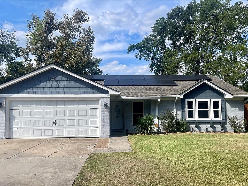 Welcome to this beautifully maintained 3-bedroom, 2-bath home in the desirable Tower Oaks Meadow subdivision, offering comfort, functionality, and modern upgrades. Step into an open living room filled with natural light and no carpet throughout, providing easy maintenance and a fresh, clean look. The kitchen and dining area flow seamlessly into the living space, perfect for gatherings. A spacious laundry room with sink adds convenience, while a soft water system and solar panel system provide energy efficiency and long-term savings. The primary suite offers double sinks and a luxurious walk-in shower with two showerheads for a spa-like experience. Outdoors, enjoy a generous backyard with a sizable storage shed and an extended driveway providing plenty of parking space. This home combines curb appeal, energy efficiency, and thoughtful design in a highly desirable neighborhood—making it a wonderful place to call your own.