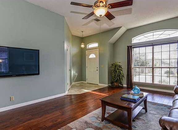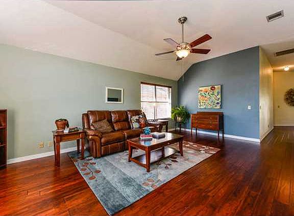 This immaculately-kept 3/2 features a formal living off the entry w/ tons of natural lighting spilling in from the beautiful frnt window. Stunning hardwoods & Decorative Colors. An architecturally appealing half wall separates the family rm from the eating area. Center-island kitchen w/ skylight & SS appl. Private master w/ a lovely bay window, WIC, dual vanities, oval soak-tub & separate shower. There is plenty of room to roam in the private fenced backyard w/ raised flower beds. Energy Star Ap