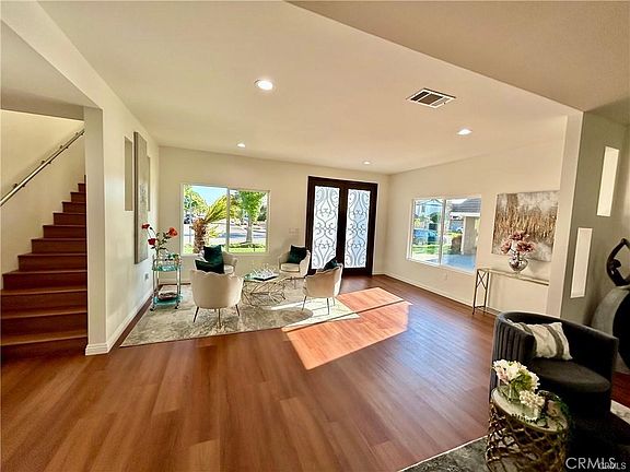 Welcome to your dream home, nestled in the heart of Cerritos! This immaculate 4-bedroom, 3-bath residence is a newly constructed gem in 2023, complete with a fresh foundation and an added second floor, expanding the living space to a generous 2,090 sq.ft. As you step through the grand entrance, you'll be greeted by stunning double glass doors, intricately designed to perfection. The interior of this home is adorned with new, exquisite flooring, cathedral ceiling and it features an open floor plan that seamlessly connects the living, dining, and kitchen areas, creating the perfect environment for family gatherings and entertaining. Every detail is brand new, from the floors to the elegant chandeliers, thoughtfully designed recessed lights and unique light fixtures that add sophistication to every corner of this home. The newly designed kitchen is a chef's dream, equipped with stainless steel appliances, including a refrigerator, and complemented by sleek quartz countertops. The newly-built garage with has been extended and widened showing custom glass garage doors that enhance the curb appeal of this home. Additional remarkable features include a new tile roof, new central air-conditioning and heating system, re-piped copper plumbing, a new state-of-the-art tankless water heater, and even a newly constructed patio, among many others. In essence, this home has been completely revamped from top to bottom. The owner has truly crafted a master piece in creating this gorgeous brand new home. Don’t let this opportunity slip away – make this exceptional Cerritos home your own. Located in the highly acclaimed ABC school district, it boasts top-rated schools such as Stowers Elementary, Carmenita Middle School, and Cerritos High School. Welcome home to a life of unparalleled elegance and convenience!