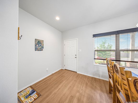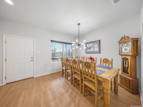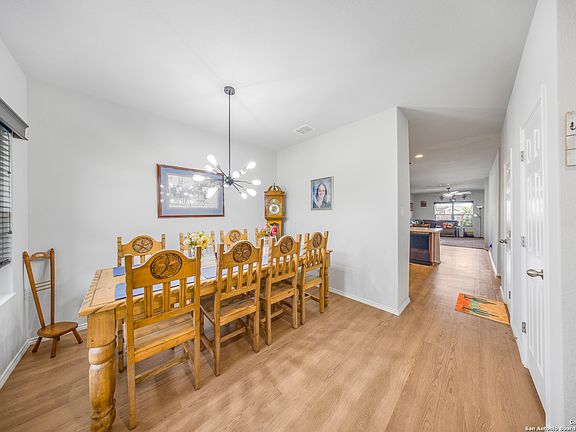 Immaculate single-story gem in charming St. Hedwig! Built in 2020 and move-in ready, this well-maintained 3-bedroom, 2-bath home offers a bright, open layout filled with natural light. A spacious foyer welcomes you and easily doubles as a study, home office, or formal dining area. The gorgeous kitchen features solid wood cabinetry, upgraded appliances (including refrigerator), and seamlessly flows into the eating area and expansive living room-ideal for gatherings and everyday living. The generous primary suite includes a ceiling fan, double-sink vanity, tiled tub/shower combo, and a huge walk-in closet. Step outside to enjoy the beautifully landscaped, fenced backyard complete with a covered back porch-perfect for relaxing, entertaining, or weekend BBQs. Attached 2-car garage, modern finishes, and a peaceful neighborhood make this home a true standout. Don't miss your chance to own this like-new beauty just a short drive from San Antonio conveniences while enjoying small-town charm!