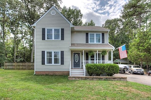 Area 54 (Chesterfield ; Spring Trace ) 2-story maintence free vinyl home, 3 bedrooms 2.5 updated baths, built in 1994, 1,556 sq. ft., .49 private acres, cul-de-sac, fully fenced in rear yard, 2 detached storage sheds with electricity and cable, newer double pane windows, newer (11/2016) second floor carpet, neutral paint, eat-in kitchen, large family room rear entry staircase, living room/office, master boasts 2 closets and renovated bath with tile shower/glass door enclosure, new 14x16 rear deck, paved driveway. Alberta Smith, Bailey Bridge, Manchester. Conveniently located to shopping, dining, hospitals and interstates.