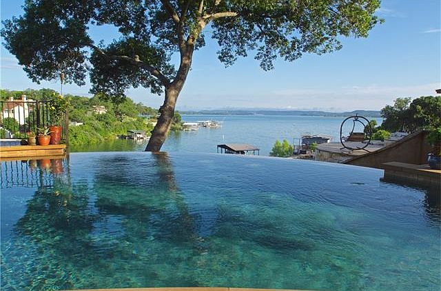Close in Oasis style property on Lake Travis with beautiful negative edge pool. This property boasts a beautiful outdoor patio with Fireplace, Bar and Grill with TV and Stereo! One story with a 3 car detached garage and beautiful landscaped grounds. There are not many places like this on Lake Travis, tranquil living yet seconds to shopping. 4 bedrooms and 3 full baths. Don't miss this unbelievable location with sunsets to match. Check out the location on the MAP!