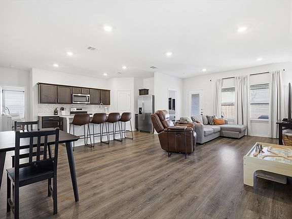 Welcome to this beautifully maintained 3-bedroom, 2-bathroom home located in The Enclave at Pecan Creek within the Providence Village area—one of North Texas’s fastest-growing and most charming communities. Built by D.R. Horton, this inviting home offers 1,489 sq. ft. of thoughtfully designed living space, combining comfort, style, and function in a single, move-in-ready package. Inside, you’ll find a bright open-concept layout that seamlessly connects the living, dining, and kitchen areas—perfect for both everyday living and entertaining. The spacious kitchen features ample counter space, a large pantry, a new backsplash, and all appliances (refrigerator, range, microwave, dishwasher, washer, and dryer) which will remain with the home. The primary suite offers a peaceful retreat with an ensuite bath and TWO generous walk-in closets, while the secondary bedrooms are ideally positioned for privacy and flexibility—ideal for family, guests, or a home office. Throughout the home, enjoy luxury vinyl plank flooring, stylish lighting, and plenty of natural light. Step outside to a covered patio overlooking a lovely backyard—perfect for morning coffee, weekend barbecues, or relaxing evenings under the Texas sky. The two-car garage adds convenience, and low HOA fees make ownership even more affordable. Nestled in a friendly neighborhood with parks, trails, playgrounds, and community amenities, this home captures the spirit of small-town charm with modern convenience. Just minutes from Highway 380, you’ll have quick access to Aubrey, Denton, Frisco, and the PGA District, as well as nearby shopping, dining, and top-rated Aubrey ISD schools—including Jackie Fuller Elementary less than a half mile away. Immaculate and move-in ready, this home is the perfect blend of comfort, quality, and location. Don’t miss your chance to make this beautiful home yours—schedule your showing today!