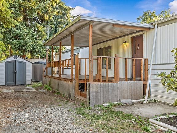 Welcome to Alpine Mobile Home Park- a highly desired 55+ community. Enjoy affordable living and bring your imagination to make this home sparkle and shine again while earning instant equity. Massive windows in the living room and kitchen fill the area with tons of natural light creating a warm and inviting feel. Down the hall from the spacious living room you’ll find a bedroom, perfect for a home office, bathroom and generous sized primary bedroom. The house is on a nice sized lot with a great location at the front of the park. 2 storage sheds offer an abundance of additional storage. A roomy front deck is perfect for taking in the fresh air. A community laundry center and low space rent round out this amazing opportunity.
