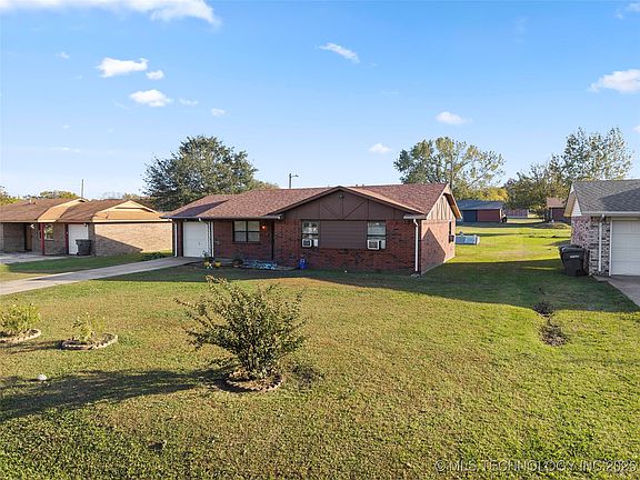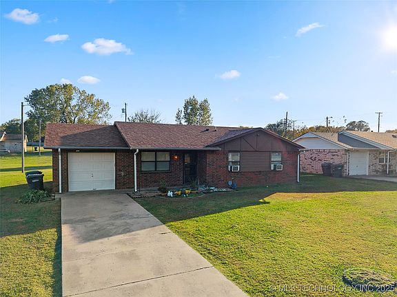 This well-maintained 3-bed, 1-bath home features updated flooring, a 1-car garage, and sits on a spacious 0.34-acre lot. The layout offers a cozy living area that flows into the kitchen and dining space — perfect for everyday comfort. Enjoy peace of mind with a built-in storm cellar, a rare and valuable feature in Oklahoma. Conveniently located near town amenities while offering a quiet neighborhood feel.