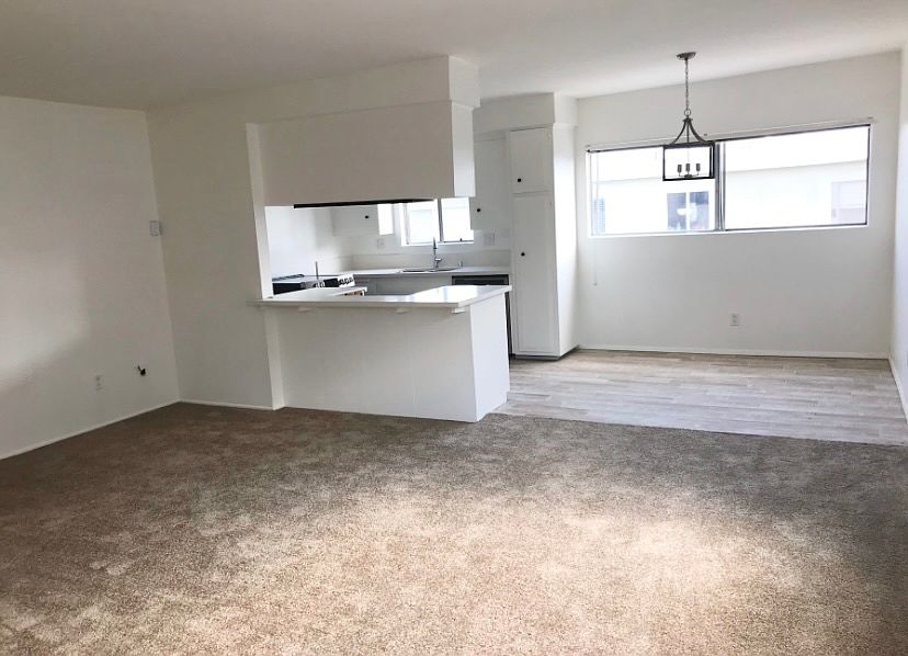Beautiful unfurnished large 1 bed, 1 bath upper apartment in 4 unit quiet building. Less than one mile to the beach. One car private garage parking, stove, dishwasher, disposal, large closet, carpets & wood tile, fresh new paint, coin laundry in building. No smoking or pets. Across the street from a plant nursery, which provides extra parking, half a block from a rose garden and park. Walkable to Vons & other shops. Available 2/22/25. One year minimum lease, excellent credit required. Trash and gardener paid.