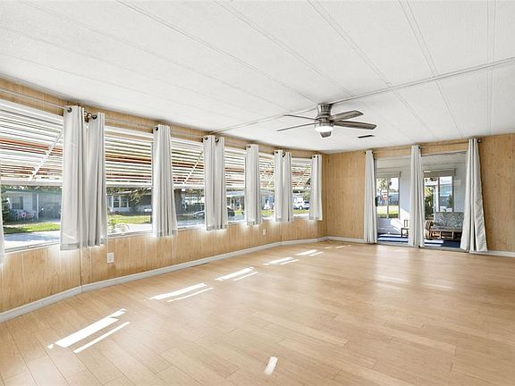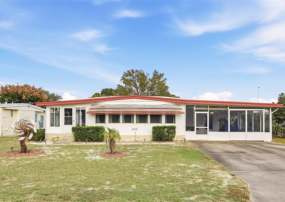 GOLF CARTS WELCOME! Discover the perfect blend of tranquility and active living in this delightful 2-bedroom, 2-bathroom manufactured home, ideally situated within a coveted 55+ Lake Frances Estates. This is more than just a home; it's a lifestyle! This impeccably maintained 2-bedroom, 2-bathroom manufactured home offers the highly sought-after advantage where YOU OWN THE LAND (NO LOT RENT!) Flooded with natural light, this home perfectly blends modern comfort with unique style. Enjoy a wonderfully bright atmosphere enhanced by recently updated BAMBOO FLOORING throughout the main living areas. The heart of the home features a stylish, UPDATED RETRO STYLE KITCHEM complete with ample cabinet space and a fantastic BUILT IN COFFEE OR WET BAR—perfect for entertaining! Unwind in the spacious, INSULATED FLORIDA ROOM. This cozy extension is ideal for slow evenings, reading, or simply enjoying the peaceful surroundings year-round. The SCREENED IN 2 CAR CARPORT is a unique and highly versatile space! It currently features a HOT TUB and includes roll-down shades for ultimate privacy. Use this area as an additional indoor/outdoor entertainment hub, or utilize it as a traditional 2-car covered parking area—the choice is yours! With a 2 car-wide driveway, there is no shortage of parking! Situated in one of Tavares' most sought after communities, Lake Frances, residents enjoy access to fantastic amenities such as a community clubhouse, pool, fishing pier, and RV/BOAT STORAGE lot. Additionally, this home's location provides easy access to medical facilities, shopping, dining, and the scenic lakefront attractions of Tavares—accessible even by golf cart. Don't miss out on this wonderful opportunity to make this lovely property your own in a thriving 55+ community.
