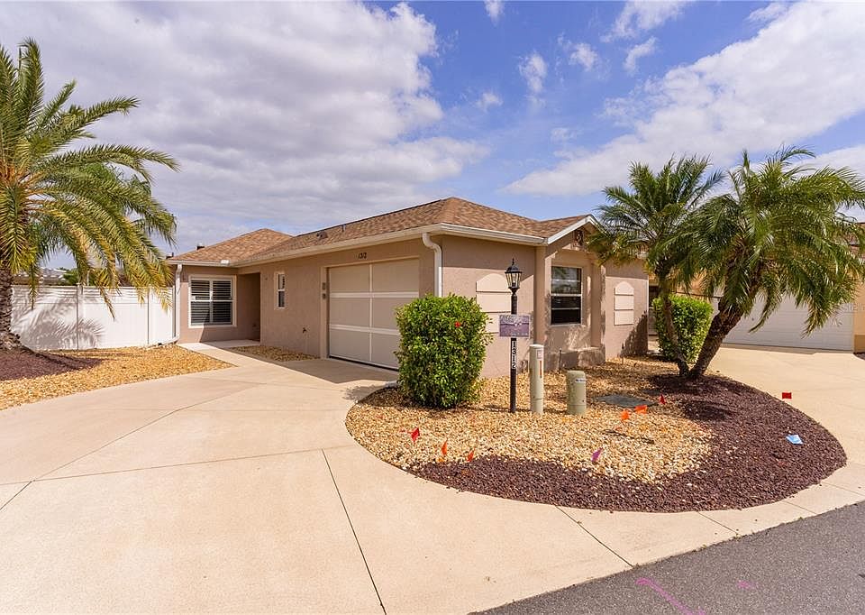 Embark on the quintessential Villages Lifestyle with this splendid TURNKEY Golf Course View Foxglove Model Courtyard Villa nestled in Allandale Villas within the esteemed Village of Duval. Offering captivating curb appeal, a new roof and inground spa. This residence also greets you with a spacious main living area with tile flooring, crown molding, and plantation shutters. Note the upgraded lighting in the dining area and kitchen, where white cabinetry, granite counters, tile backsplash, and stainless steel appliances await, promising both functionality and style. Retreat to the primary bedroom with ensuite bath, featuring access to the lanai for seamless indoor-outdoor living. The second bedroom boasts built-in office with storage and luxurious vinyl flooring, ensuring comfort and productivity. An additional 2nd bath with shower, next to the third bedroom stands ready to accommodate family and friends. In addition to a beautiful inside, the garage offers a newer furnace and water heater and an electric screen. Experience outdoor living on the gorgeous screened lanai, with brick pavers and an inground spa, all while enjoying the breathtaking golf course view. Don't miss the opportunity to tour this magnificent home. Golf cart is available for purchase separately. Call today to arrange your private viewing and step into your dream lifestyle in The Villages.