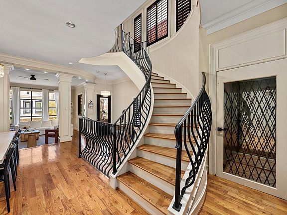 - Exterior features: 2 Bedrooms Down, 2 Bedrooms Up, 2 Staircases, Attached, Balcony, Balcony/Terrace, Crown Molding, Dry Bar, Electric Vehicle Charging Station, Electric Vehicle Charging Station(s), Elevator, En-Suite Bath, Entry, Flooring: Wood, Formal Dining, Formal Entry/Foyer, Formal Living, Full Size, Gas Dryer Hookup, Gas Log, Guest Room, Guest Room Available, Guest Suite, Heating system: Zoned, Heating: Gas, High Ceilings, Kitchen/Dining Combo, Living Area - 2nd Floor, Living/Dining Combo, Lot Features: Subdivided, Patio/Deck, Prewired for Alarm System, Primary Bed - 3rd Floor, Private Elevator, Subdivided, Trash Pick Up, Utility Room, Vaulted Ceiling, Walk In Closet, Walk-In Closet(s), Washer Hookup, Window Coverings, Wired for Sound